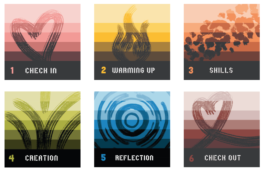 Het 6-stappen ontwerp systeem is een hulpmiddel voor het ontwerpen van (creatieve) sessies die kunnen bijdragen aan psychosociale en trauma-sensitieve ondersteuning. De structuur helpt bij het creëren van een veilige ruimte en voorspelbaarheid.