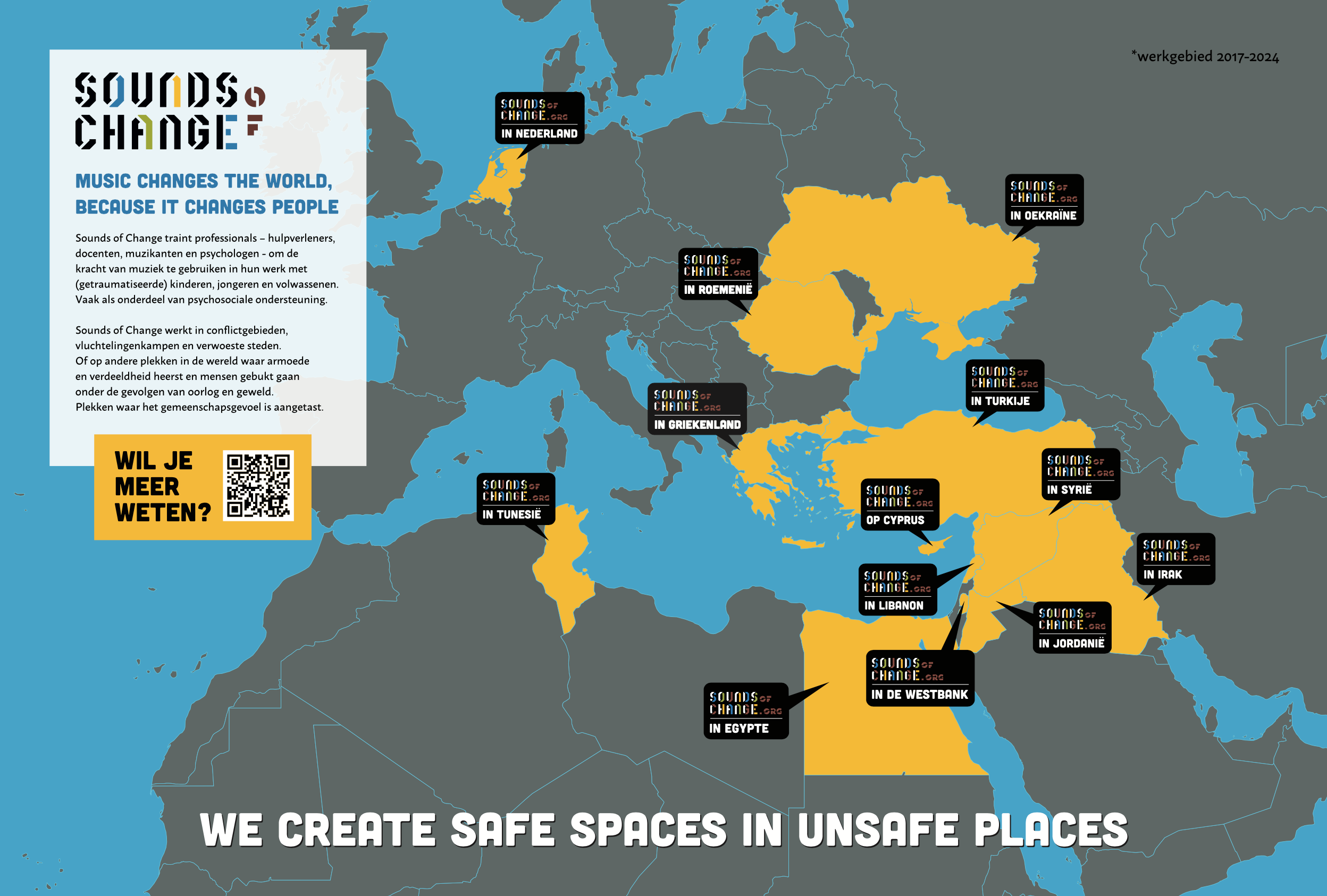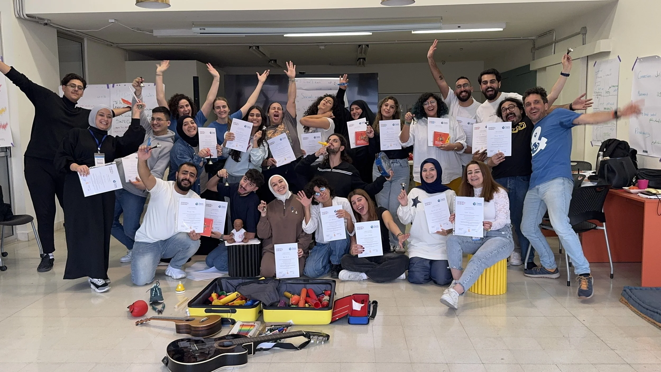 In Lebanon, Sounds of Change trainers Nour Hanna and Lucas Dols, together with our colleague Anne Don from Trauma International, facilitated a five-day training course for 23 local professionals working in psychosocial support and humanitarian response.